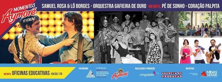A cidade histórica de Ouro Preto sedia a penúltima edição do ano do Programa Cultural Momentos Aymoré. No sábado, 20 de agosto, a partir das 15h, o município será presenteado com uma programação gratuita para toda a família. A Praça Tiradentes receberá atividades recreativas e shows musicais de Coração Palpita, Pé de Sonho e Samuel Rosa com Lô Borges.