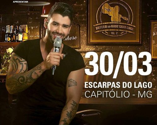 Como na referência do trecho de sua própria música diz, Capitólio pode abrir o portão, pois ele está chegando! No dia 30 de março, sexta-feira, a partir das 17h, Escarpas do Lago (Estrada de Capitólio, KM2 – Sindicato Rural de Capitólio/MG) receberá o cantor Gusttavo Lima com a turnê de seu novo trabalho, “Buteco do Gusttavo Lima 2”, que promete animar os amantes da música sertaneja com um repertório de grandes sucessos, como o hit “Apelido Carinhoso”. A apresentação será acompanhada ainda pelo talento e musicalidade de Lucas Barros, Victor Alves, Voltech, The Fish House eIngek, responsáveis por abrilhantar ainda mais a festa.