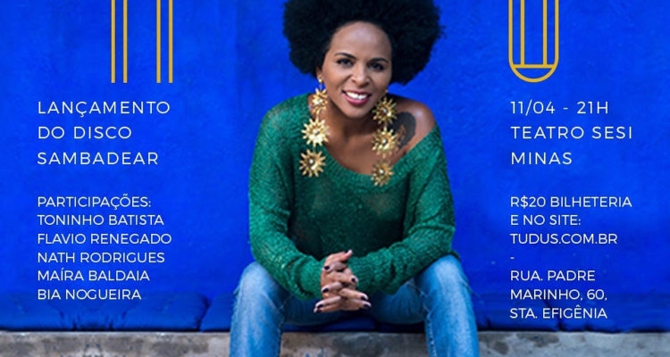 Manu Dias, uma das grandes revelações do samba, está prestes a lançar o seu primeiro álbum, intitulado Sambadear. O trabalho conta com 10 faixas, das quais Manu assina duas parcerias: Sorriso de Deus, com Toninho Batista e Filha do Criador, com Thiago Delegado. O show será realizado no dia 11 de abril, quinta-feira, às 21h, no Teatro SESIMINAS (Rua Padre Marinho, 60 – Santa Efigênia, Belo Horizonte MG). Para abrilhantar o show, ela traz nomes conhecidos da música, como Toninho Batista, Flávio Renegado, Nath Rodrigues, Maira Baldaia e Bia Nogueira.