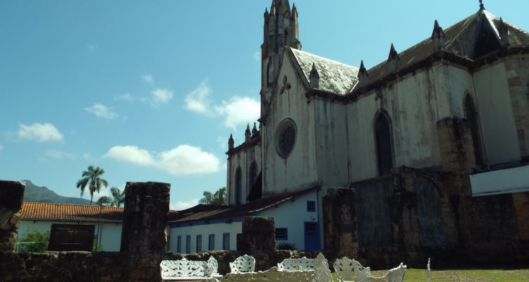 O Santuário do Caraça é a primeira igreja neogótica do Brasil, construída sem mão-de-obra escrava e toda com material regional: pedra-sabão (retirada de perto da Cascatona), mármore (das proximidades de Mariana e Itabirito, Gandarela) e quartzito (da região do Caraça e vizinhanças), unidas com produtos de base de cal, pó de pedra e óleo.